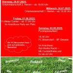 Wie war die Wetterprognose für den Sommer? Es sollte doch so richtig heiß und warm werden, oder? Leider war ein Großteil der Sommerferien eher kühl und verregnet und damit auch insbesondere der Abschluss der diesjährigen Sportwerbewoche. Aber wie schon im letzten Jahr zum 75jährigen Jubiläum tat dies der Stimmung und der Anzahl an Besuchern keinen Abbruch.