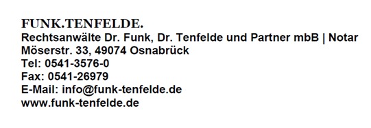 Gesponsert wurde dieser von der Kanzlei Rechtsanwälte und Notar Dr. Funk, Dr. Tenfelde und Partner mbB mit Sitz in der Möserstr. 33 in 49074 Osnabrück.
