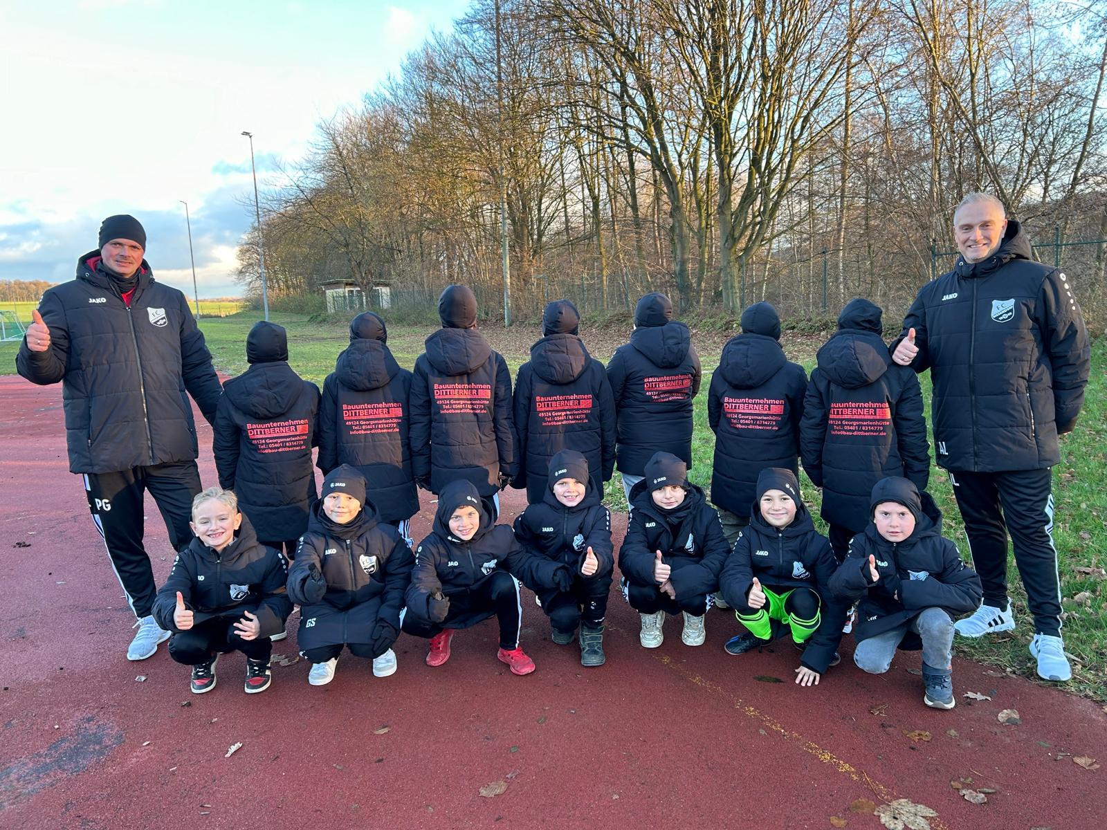 Alle kleinen Kicker aus unserer E1 freuen sich zum Beginn der neuen Saison über einen neuen Trikotsatz vom Bauunternehmen Dittberner aus GM-Hütte. Schon im Winter gab es eine komplette Ausstattung für die kalte Jahreszeit in Form von Jacken, Mützen, Schal und Handschuhen. Damit ist die Truppe nun für jede Jahreszeit bestens ausgestattet und hofft zusammen mit dem Trainerteam auf eine erfolgreiche Saison. Ein großer Dank geht an den großzügigen Sponsor!