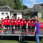 Unsere jungen Kicker haben am letzten Wochenende nach ganz starken Leistungen den 2. Platz bei der vom Nachbarverein SV Viktoria Gesmold ausgetragenen Mini EM erreicht. Dort wird alle zwei Jahre vor den großen EM bzw. WM Turnieren gemäß dem Vorrundenspielplan und der anschließenden Auslosung ein komplettes Turnier gespielt – in diesem Jahr mit 24 Teams. Jeder teilnehmende Verein vertritt dabei ein Land, das sich tatsächlich qualifiziert hat. Und genau passend zu unseren Vereinsfarben vertrat unsere Mannschaft das Land Polen in rot und weiß! Nach dem Erreichen des Achtelfinales durch ein 9m Schießen, lief das Team zu Höchstform auf und wurde von Spiel zu Spiel besser – wie eine echte Turniermannschaft eben! Im Finale unterlagen die Jungs nach einem 1:1 dann erst im 9m Schießen knapp gegen Frankreich, das vom TSV Westerkappeln vertreten wurde. Herzlichen Glückwunsch! Aber auch der 2. Platz ist ein mega Erfolg! Das sahen die mitgereisten Eltern sowie Trainer Patrick Guss und Andy Laske genauso. Ein großer Dank geht abschließend an die Viktoria für das klasse organisierte Turnier und die vielen ehrenamtlichen Helferinnen und Helfer vor Ort.