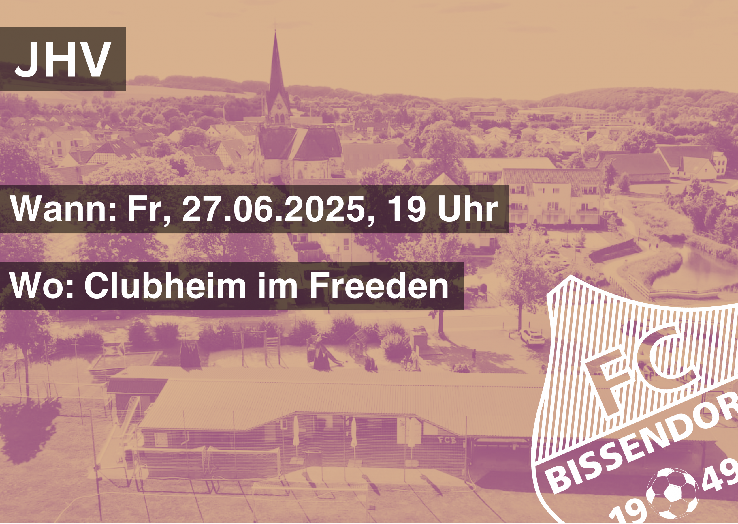 Termin Details Datum: 27. Juni 2025 19:00 – 21:00 Ort: FC Bissendorf 1949 e.V. Unsere diesjährige JHV mit Neuwahlen findet wie gewohnt Open Air am Clubhaus statt. Wir hoffen auf zahlreiches Erscheinen 🙂 Ähnliche Beiträge