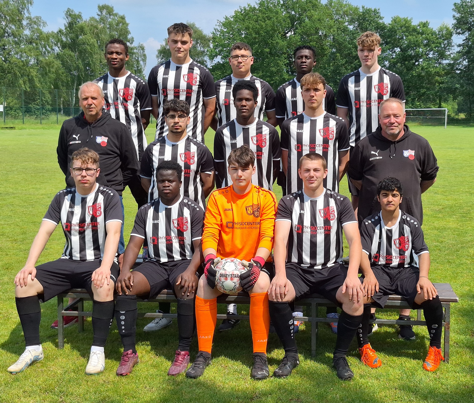 Die Jugendlichen, meist aus unterschiedlichen afrikanischen Ländern stammend, besuchten daraufhin regelmäßig das Training, integrierten sich schnell in das Team und wurden von der bestehenden Mannschaft ebenfalls herzlich aufgenommen. Sehr schnell entwickelte sich Englisch zur neuen Teamsprache. Da unter den Geflüchteten überragend starke Fußballer waren, wurden schnell die Spielerpässe beantragt, nachdem alle notwendigen Unterlagen zusammengetragen waren. Passend zum Rückrundenbeginn nach der Winterpause war ein Großteil der Jungs spielberechtigt. Die dadurch verstärkte A-Jugend konnte daraufhin die Saison als bestes Rückrundenteam mit 21 von möglichen 24 Punkten abschließen. Leider wurden einige von ihnen im Sommer durch das Jugendamt auf die umliegenden Landkreise verteilt, aber der freundschaftliche und stetige Kontakt ist nicht abgebrochen. Auch zur neuen Saison freuen wir uns, dass wir zu den verbliebenen Spielern der letzten Saison wieder einige neue, gute Fußballer von der Inobhutnahme Ellerbeck in unserem Team begrüßen können. So besteht die Mannschaft in der kommenden Saison zur Hälfte aus Geflüchteten, die sich durch ihr ruhiges und zuvorkommendes Auftreten schon jetzt einwandfrei integriert haben.