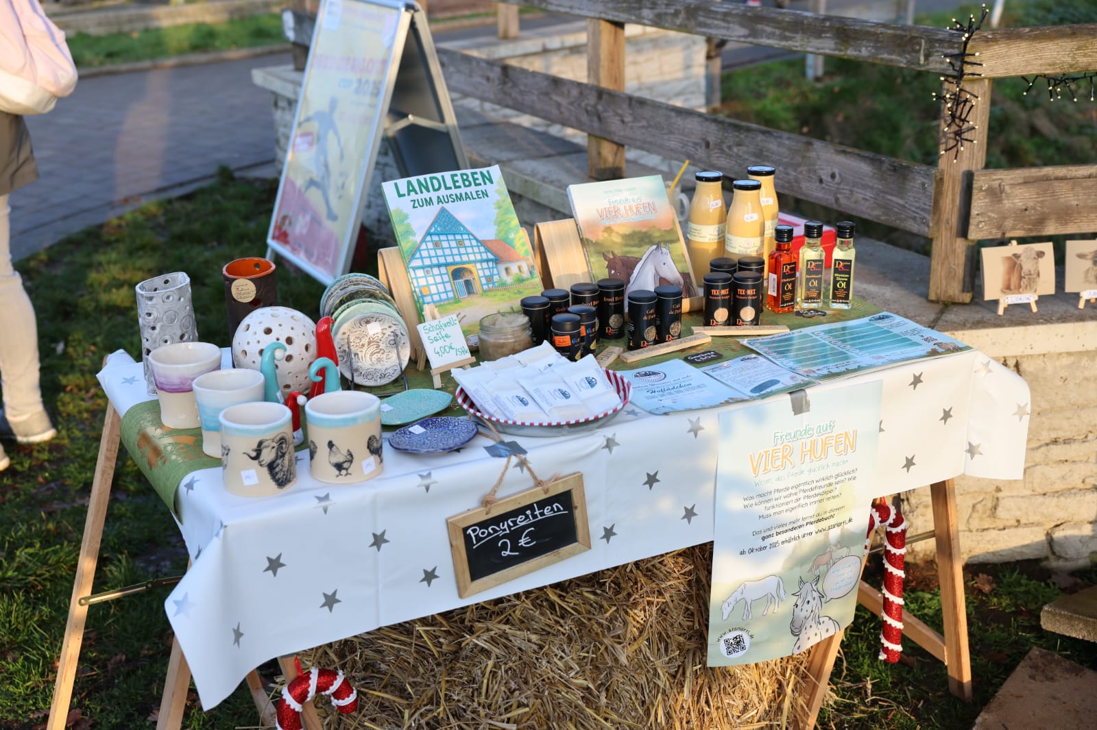 Die liebevoll gestalteten Marktstände präsentierten eine breite Palette an regionaler Handwerkskunst. Die Aussteller dekorierten liebevolle Stände und trugen mit ihrem Angebot maßgeblich zur vorweihnachtlichen Atmosphäre mit bei. Für das leibliche Wohl sorgten neben den herzhaften Speisen auch das knisternde Lagerfeuer samt Stockbrot, die zum Verweilen einluden. Die kleinen Gäste erfreuten sich am Ponyreiten und dem bepreisten Dosenschießen, während der Weihnachtsmann samt Jutesack die jüngsten Besucher erstrahlen lies.