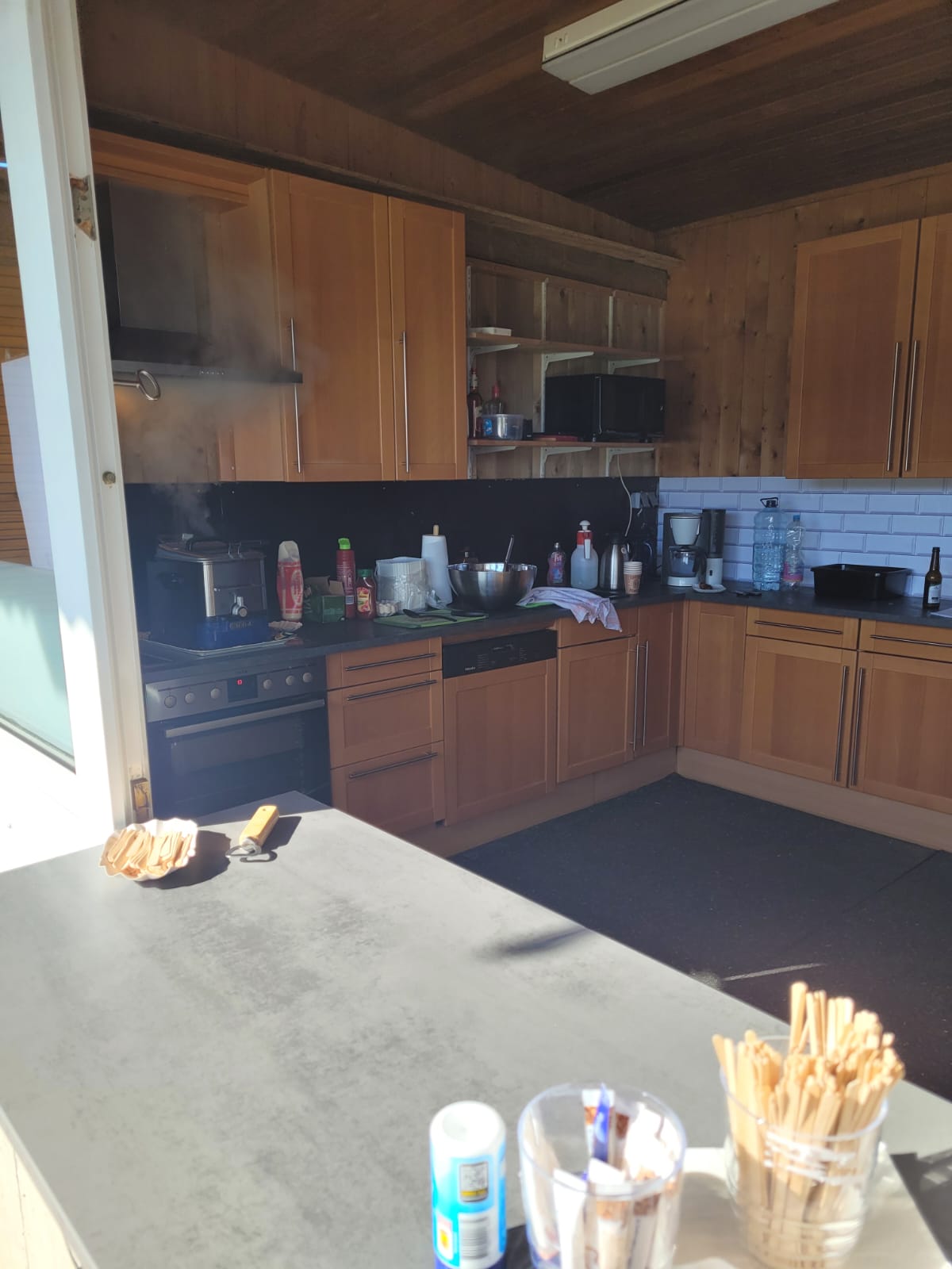Zum Auftakt des Fußballjahres 2026 wurde beim Heimspiel der I. Herren am heutigen Sonntag der neu gestaltete Verkaufsraum in der Hütte am Kunstrasen eingeweiht. Dank der großzügigen Küchenspende eines unserer Vereinsmitglieder konnte der bisher eher einfach ausgestattete Raum nun viel komfortabler und schöner eingerichtet werden. Neben einem Backofen und einer Spülmaschine ist auch eine Fritteuse vorhanden, so dass zusätzlich zu den allseits beliebten Bratwürstchen von Grillmaster Peter ab jetzt z.B. auch Pommes angeboten werden können. Bei strahlendem Sonnenschein und einem gut besuchten Spiel musste gleich schon in der Halbzeit Pommesnachschub geholt werden 🙂 Brigitte Sauert und ihr Kioskteam freuen sich sehr über die verbesserten Möglichkeiten oben am Kunstrasen. Ein großer Dank geht an alle FC Helferinnen und Helfer, die dies durch ihre Handwerks- und Elektroarbeiten in den letzten Wochen möglich gemacht haben. Ein weiteres positives Beispiel für funktionierendes Vereinsleben bei uns im FC!