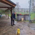 Bei nicht gerade frühlingshaftem Wetter hatten sich heute im Laufe des Nachmittags ungefähr 20 Vereinsmitglieder am Clubhaus eingefunden, um die Sportanlage nach dem Winterschlaf auf Vordermann zu bringen. Eine wirklich tolle Unterstützung von jung bis alt! Es machte großen Spaß zu sehen wie alle mit großem Eifer mit anpackten. So wurde der Rasenplatz an vielen Stellen ausgebessert, die angrenzenden Grünflächen gemäht, die Überdachung am Clubhaus gereinigt, das Beet vor dem Clubhaus hübsch gemacht und ein Teil der großen Pflasterfläche am „neuen“ Kabinentrakt vom Schmutz befreit. Nach der Arbeit wurden bei Kaltgetränken und der obligatorischen Bratwurst das tolle Ergebnis begutachtet und die nächsten Schritte besprochen. Ein großer Dank geht an alle Helferinnen und Helfer für euren klasse Einsatz bei bestem Fritz Walter Wetter!