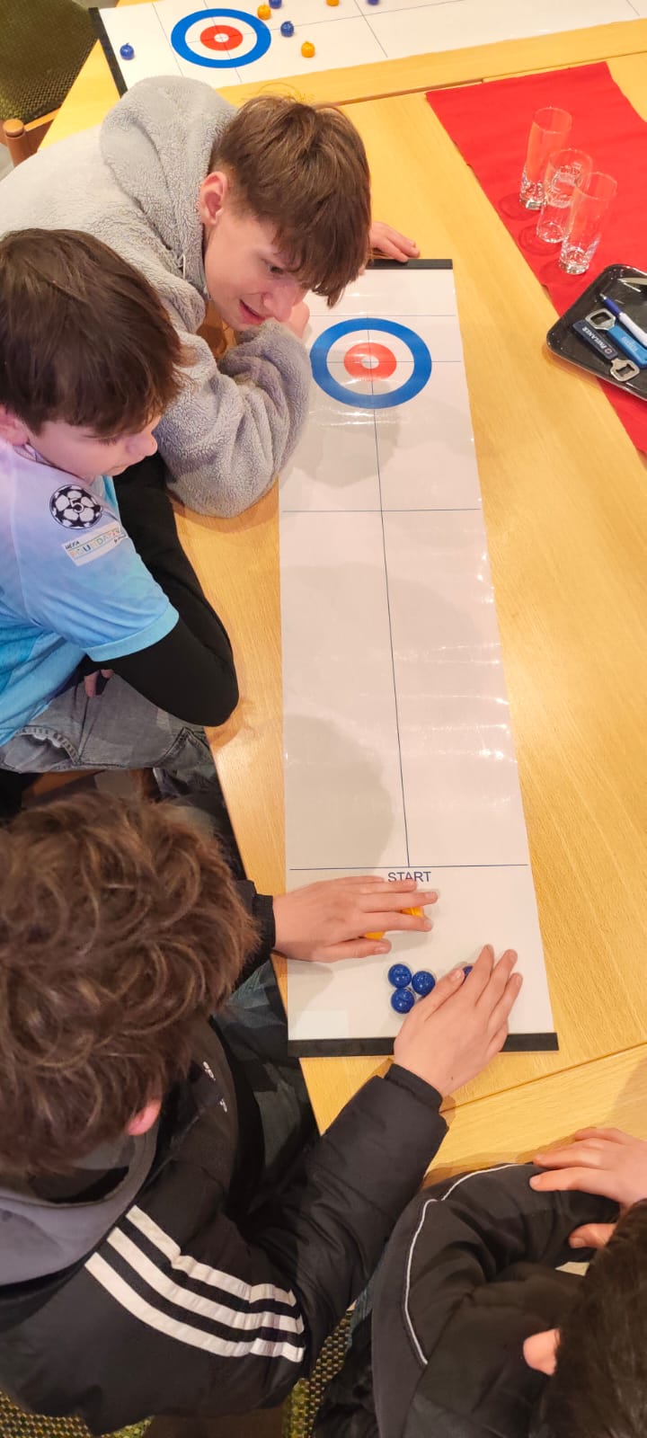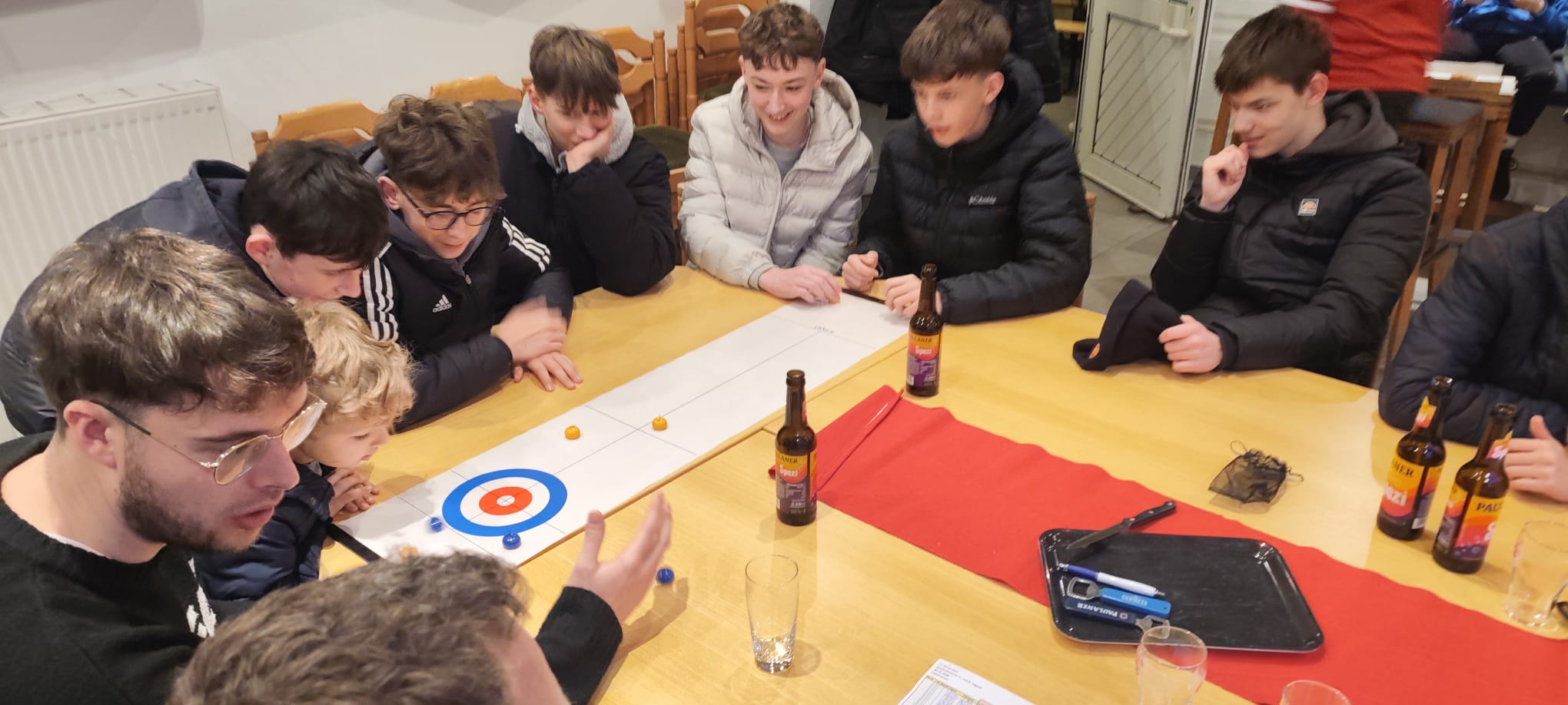 Unser Sportsfreund und „Spielemaster“ Theo Tubel hatte insgesamt fünf verschiedene Geschicklichkeitsspiele vorbereitet – ja! Ihr habt richtig gelesen 😊. Es waren keine Handy- oder Konsolenspiele am Start! So versuchten sich die einzelnen Mitglieder der Mannschaften in den folgenden zwei Stunden an Stationen wie „Ringewerfen“, „Tisch Curling“ oder „Cornhole“. Außerdem gab es zwei teambildende Aktionen. Hier musste man als gesamte Gruppe jeweils das „Labyrinth“ und den „Jengaturm“ bewältigen. Die sicherlich etwas ungewohnten Stationen bereiteten den Jungs sichtlich Spaß und das Handy wurde tatsächlich mal für eine gewisse Zeit vergessen 😊. Am Ende gab es noch eine kleine Siegerehrung, bei der Medaillen und Pokale an das beste Team und die drei jeweils erfolgreichsten Mannschaftsspieler überreicht wurden. Die B-Jugend landete als Team auf Platz 1, gefolgt von der C2 und C1.