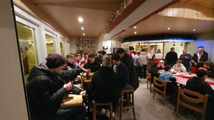 Um ein wenig Abwechslung in die kalte Jahreszeit zu bringen, hatte der Vorstand unsere Spieler der C- und B-Jugend zu einem gemeinsamen Spieleabend eingeladen. Insgesamt 35 Jungs der JSG sowie alle sieben Trainer der drei Teams waren der Einladung gefolgt. Dabei sollte allen auch für ihren teilweise großen Einsatz beim FC Weihnachtsmarkt und Heddergott Cup am Ende des letzten Jahres gedankt werden.