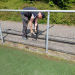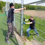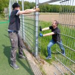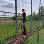 Am letzten Wochenende war wieder viel los auf den beiden Sportplätzen. Es wurde dank einiger Helfer so einiges geschafft. Am Kunstrasenplatz reparierten Stacho und seine Mannschaft sowohl den defekten Fangzaun hinter dem Tor als auch das Eisengitter am Boden. Auf dem Rasenplatz wurden die Bandwerbungen durch Jan Kollorz und seine Helfer etwas auf Vordermann gebracht. Auch auf dem Rasenplatz stehen zeitnah Arbeiten an, nachdem der Zustand im neuen Jahr noch etwas weit von „englischem Rasen“ entfernt war. So wird der Rasenplatz noch in diesem Monat und während der Sommerpause im Juli von der Gemeinde ausgebessert, damit zum Start in die neue Saison dann hoffentlich alles soweit abgeschlossen ist. Vielen Dank an die Gemeinde für den kurzfristigen Einsatz! Schließlich sollen die neue Sitzecke und der gerade bei Jugendspielen inzwischen häufig geöffnete Kiosk auch genutzt werden können, während der Ball am Sonnensee rollt. Bis zur Jahreshauptversammlung am 8. Juli wollen wir dann noch rund um das Clubhaus herum den Pinsel schwingen. Auch hierfür benötigen wir tatkräftige Unterstützung. Infos dazu folgen bald.